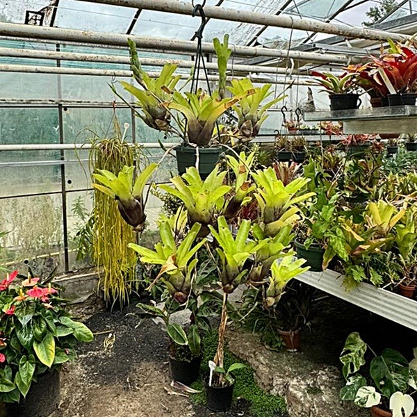 Im Sommer können die Pflanzen draußen gehalten werden, wenn die Nachttemperatur nicht unter 15°C fällt.Bromelien bilden kaum Wurzeln aus und brauchen deshalb einen lockeren Boden, am besten aus Torffasern und Baumrinde. Einige Arten kann man nur auf Steine halten.Zum Gießen am besten zimmerwarmes Regenwasser verwenden oder kalkarmes, abgestandenes Leitungswasser. Das Gießwasser wird direkt in den Blatttrichter gegossen. Bei Haltung ohne Substrat die Pflanzen mehrmals täglich besprühen.Die Vermehrung ist sehr einfach.